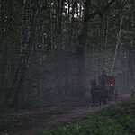 Съемки стартовали в парке Братцево со сцен с каретой. Темная дорога в парке, предусмотрительно обильно задымленная, для пущей таинственности, по ней скачет четверка вороных, везущая черную карету с кучером на козлах… А перед ними, чтобы не пугать лошадей, жужжит коптер, мигая зелеными огнями.
