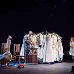 Продолжается фестиваль «Артмиграция» в ТЦ «На Страстном». 8 сентября Саратовский Театр юного зрителя показал спектакль Андрея Гончарова «Как Зоя гусей кормила» по одноименной пьесе талантливого молодого драматурга Светланы Баженовой. Эта небольшая одноактная пьеса при всем изобилии комических ситуаций глубоко трагична по содержанию. Молодая деревенская девушка Женя сбегает в город, прихватив с собой «только самое необходимое» — несколько десятков «шикарных» платьев. Жизнь в городе кажется ей сплошным непрекращающимся праздником. Тем более, вопрос с жильем так удачно разрешился — ее готов приютить одинокий пожилой холостяк. Но жизнь полна сюрпризов — холостяк оказался обременен умирающей матерью, которая не слишком торопиться умирать, а вполне себе бодро и с удовольствием портит жизнь сыну, а заодно и Жене. Когда-то Зоя «похоронила себя, как женщину», все силы бросив на то, чтобы поднять сына, а как известно, всякая жертва требует расплаты. Зоя свято верит, что за свою жертву она имеет полное право на всю жизнь сына целиком, без остатка, не замечая, что ребенок давно вырос, и даже состарился, что ее опека давно стала ошейником на шее сына, который не дает ему свободно дышать. Сын Зои Владимир — талантливый ученый, давно смирился со своей участью, но безмерно устал от чудачеств матери. Для него приезд Жени — последняя надежда что-то изменить в своей жизни. Надежду разбивает лучший друг, подлец и циник Плоцкий, всю жизнь завидовавший Владимиру. Сцена изнасилования, пожалуй, самая сильная в спектакле — Плоцкий ест, нет — пожирает борщ, грубо, властно, с особым цинизмом. Женя исчезает, и жизнь для Владимира заканчивается. В прямом смысле.