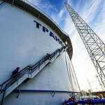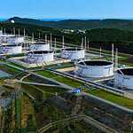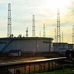 Резервуарный парк нефтебазы на территории специализированного морского нефтеналивного порта “Козьмино”.
