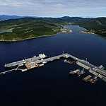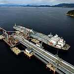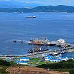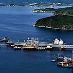 Причал погрузки нефти в бухте Козьмина, где находится специализированный морской нефтеналивной порт “Козьмино”. Нефтепорт предназначен для приема, хранения и перевалки нефти, поступающей по трубопроводной системе “Восточная Сибирь – Тихий океан” и ее перевалки на современные морские суда.