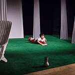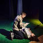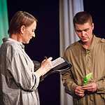 27 сентября в Театре на Таганке был показан очередной эскиз в рамках проекта “Репетиции”. Эрвин Гааз представить свою работу “Лунные зайчики” по пьесе современного драматурга Романа Михеенкова. В центре событий молодой немец, студент консерватории Ганс (Никита Лучихин), подрабатывающий на каникулах в бизнесе своего дяди на кладбище. Помимо обычных ритуальных услуг, на этом кладбище выращивают деревья, и родственники усопших имеют возможность выбрать дерево, у корней которого будет захоронен прах близкого человека. То ли внешность у студента располагающая, то ли место такое, но каждый посетитель невольно рассказывает Гансу свою историю. За один день Ганс пережил три встречи и эти встречи что-то сдвинули в его мировоззрении.