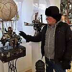 Гостеприимный и радушный хозяин с удовольствием рассказал о своих работах и творчестве своих друзей, показал мастерскую и провёл по залам своего музея.