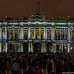 Завораживающая игра света «оживила» архитектурный облик Зимнего дворца, дополнив его сочными красками и замысловатыми орнаментами.