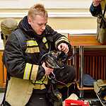 По легенде учений охранник музея обнаружил возгорание в выставочном зале на третьем этаже, где расположена экспозиция макета квартиры времён Великой Отечественной войны. Сотрудник музея незамедлительно оповещает о происшествии администрацию и звонит на единый номер вызова экстренных служб “112”. К месту происшествия выдвигаются первые пожарные расчёты.