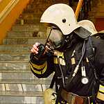 Администрация принимает все меры по эвакуации людей из здания. К слову, пути эвакуации не отрезаны огнём, но в здании сильное задымление-продукты горения быстро распространяются в выставочные залы второго и третьего этажей. Вовремя подоспевшие пожарные, первые расчёты которых прибыли к месту вызова уже через 6 минут, надевают на людей средства индивидуальной защиты дыхания и выводят их на свежий воздух.