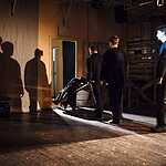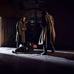 Как уже понятно из названия, композиция составлена из «Колымских рассказов» Варлама Шаламова. Я специально не пишу «по мотивам», потому что режиссер-постановщик Мария Аврамкова не позволила себе ни малейшего отклонения от авторского текста. Это серьезно. Так серьезно, что даже небольшая режиссерская вольность, даже намек на переделку сюжета на современный лад выглядели бы кощунством. Поэтому на сцене все предельно приближено к реальности. Той реальности. Я сейчас говорю не о детальном воссоздании обстановки ГУЛАГа. На сцене аскетичные декорации. В сущности, из декораций только письменный стол, стул, лампа и деревянная тачка. Задник — большой экран. На нем хроника. Вот Москва 30-х — мирная жизнь, черно-белое кино. А вот зэки валят лес, долбят лопатами мерзлую землю, спят на земле. Еще живы? Может быть, уже нет.