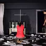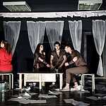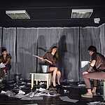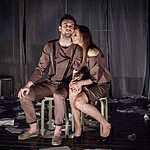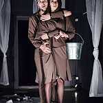 Четыре икеевских крашеных табуретки, журнальный стол и четыре цинковых ведра с водой. Это декорации спектакля. Да! Еще бумага! Много белой бумаги, разбросанной по полу. Ей предстоит играть роль газет, белья, писем, то есть всей неживой природы спектакля. Белые полупрозрачные занавески по периметру сцены. Они спрячут то, что нужно спрятать и откроют то, что надо открыть. Вот и все. Все остальное — актеры. Молодые. Красивые. Резкие. Аскетичные. Как декорации. Никаких лишних красок. Никаких лишних слов. Зато много движений. Разных. Например, таких, о которых не написано в пуританской пьесе Осборна. Они танцуют, меняются местами, примеряют на себя чужие роли. Правда ли Джимми так зол и несчастен, как хочет казаться? Откуда и зачем на самом деле появилась Елена? Кто такой Клифф? Что происходит с Элисон? Ответы на эти вопросы вы не найдете в оригинальном произведении Осборна. Потому что все эти вопросы заданы режиссером спектакля «Пока ты здесь…». Возможно, что каждый из них имеет несколько вариантов ответов. Или ни одного? В спектакле много условностей. Вечерний чай (священный и нерушимый для каждого англичанина!) – из ведра. В одноразовом стаканчике. Ритмичная музыка, мокрая бумага, развешанная на сцене на бельевой веревке, резкие обрывки фраз, внезапный танец, перестановка, перемещение, подмена … Вам ничего не объяснят, не растолкуют, не дадут времени опомниться. И все. И нет старой доброй Англии. Даже такой: со всем ее черным юмором и скрытым абсурдом. Есть только обнаженное и больное сосуществование двух людей, которым хотелось бы быть Медведем и Белкой, а приходится быть мужем и женой.