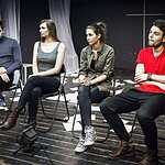 12 февраля 2017 года московский театр «Streler theatre» организовал пресс-показ спектакля «Пока ты здесь …» по мотивам пьесы Джона Осборна «Оглянись во гневе». «Streler theatr» – это молодой театр, существующий около трех лет, с труппой из 11 человек и тремя спектаклями в репертуаре: Чехов, Лорка и Осборн.