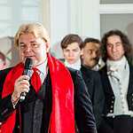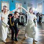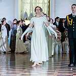 Илзе и Андрис Лиепа, Анатолий Белый и Фекла Толстая рассказали участникам бала о героях войны – князьях Кутузове-Смоленском, Багратионе и Воронцове, о генералах Милорадовиче и братьях Тучковых, и многих других. Фекла Толстая прочла отрывки из романа своего прапрадедушки «Война и мир», создатель проекта «Кинопоэзия» актер Анатолий Белый прочел стихи гусарского поэта Дениса Давыдова и отрывки из романа Пушкина «Евгений Онегин».