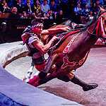 Хозяева площадки также приняли участие в празднике. Джигиты под руководством Якова Экка показали номер из спектакля «Снежная королева», эту постановку можно увидеть на манеже Большого Московского цирка до 28 мая.