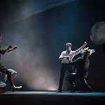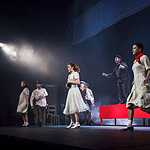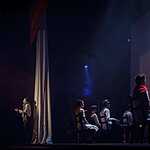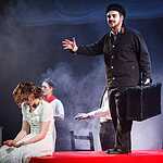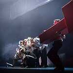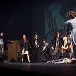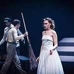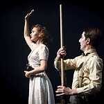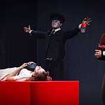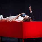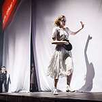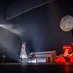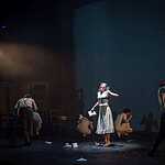 Тексты Платонова, на мой взгляд, это всегда вызов режиссеру, поскольку перевести на язык визуальных образов тот намеренно сниженный, простоватый, наполненный канцеляризмами и агитационными штампами и при этом невероятно емкий и поэтичный язык, на котором говорят не только герои, но и сам автор, задача нетривиальная. Насколько она удалась создателям спектакля, не мне судить, могу лишь сказать, что смотреть спектакль интересно, действие развивается стремительно, много динамичных сцен, бескомпромисное колористическое решение – на сцене превалируют три цвета – белый, черный, насыщенный красный. В спектакле сохранены все сюжетные ходы рассказа, реплики персонажей взяты без изменений, и все же, да простят меня авторы постановки, я отчетливо понимаю, насколько некорректно сравнивать литературную основу и сценическое воплощение, но оригинальное произведение Андрея Платонова мне лично кажется глубже, пронзительней, тоскливей показанного спектакля. Возможно, причиной тому схематичность всех, за исключением Фро, персонажей, и выбеленные лица – маски тому подтверждение. Главную героиню окружают не живые люди, а обозначения людей, маски , знаки. Печально, что этой знаковости не избежал даже старик отец – потенциально очень богатый образ. Возможно, режиссер таким образом хотел показать восприятие окружающих одурманенной любовной тоской Фро, не знаю, строить догадки – занятие не благодарное. В любом случае, визуально спектакль очень хорош и, безусловно, достоин просмотра.