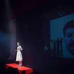 Написанный уже далеко не молодым человеком, на собственном опыте познавшем и голодное детство в многодетной семье, и тяжелый труд с 14-ти лет, и ужасы гражданской войны, и эйфорию первых лет строительства нового мира, сменившуюся жестоким разочарованием и глубокими сомнениями в справедливости построенного общества, рассказ “Фро ” ознаменовал собой очередной поворот в творчестве Андрея Платонова. Если в своих антиутопиях Платонов исследует устройство общества в целом, то в данном и других рассказах, опубликованных в сборнике 37-го года пристальному вниманию писателя подверглается внутренний мир отдельного человека, его чаяния и надежды, радости и горести, его быт и метания души. Этот небольшой рассказ об одиночестве, о неустроенности, о разрушении семьи в угоду несбыточной мечте о светлом будущем. Коммунистические идеологи приложили немало сил, утверждая примат общественных интересов над личными и двадцатилетние труды не пропали даром. Муж Фро Федор – талантливый инженер, искренне любит жену, тем не менее, уезжает далеко и надолго строить светлое будущее для всего человечества, не обращая внимания на страдания близкого человека. В жизни Фро также есть “одна, но пламенная страсть” – любовь к Федору. Без любимого Фро тоскует, чахнет, перестает следить за собой и квартирой, забрасывает учебу. Ее тоска всепоглащающа, но не беспросветна – у Фро есть надежда на возвращение Федора или хотя бы на письмо от него. Другое дело, отец героини – Нефед Степанович. Его одиночество окончательно и безнадежно. Он никому не нужен на этой земле: ни единственной дочери, поскольку мешает ей тосковать по мужу, ни на работе, где его из милости держат на должности дежурного механика. Поэтому он – старик, всю жизнь отдавший работе, так держится за эти редкие случайные рейсы. При этом он любит дочь, не обижается на ее грубости и десять дней ночует на вокзале, чтобы не стеснять Фро и ненадолго вернувшегося Федора. В образе Нефеда Степановича Платонов показал будущее, которое, вероятно, ожидает и Федора, так неосмотрительно разрушающего семью в угоду эфемерному “светлому будущему”, а на самом деле, в угоду безжалостной пропагандистской машине. И хотя прямо о пропаганде в тексте Платонова ничего не сказано, но то и дело возникающие в речи персонажей словечки и выражения из лексикона агитпропа говорят сами за себя. В спектакле эта тема обозначена более наглядно с помощью кадров кинохроники, портретов вождя, да и некоторые эпизоды спектакля напоминают выступления синеблузочников.