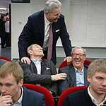 В пресс-центре стадиона прошло чествование ветеранов, среди которых наиболее организованными оказались хоккеисты – здесь собралась настоящая команда-легенда: Вячеслав Старшинов, Александр Якушев, Борис Майоров, Сергей Шепелев, Игорь Болдин и другие мастера. Провели встречу председатель общества Анна Алёшина и пресс-атташе футбольного «Спартака» Леонид Трахтенберг.