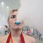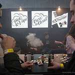 Прямо у входа посетителей вставки в Сокольниках встречала паровая завеса и множество точек продаж, консультантов по новому направлению втягивания в себя никотиновых паров. Под модную музыку и в обществе красивых женщин курильщики с энтузиазмом вдыхали разнообразные виды пара, жидкости для которого. были представлены тут же в широком ассортименте.