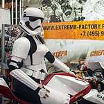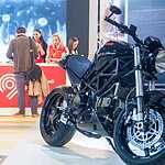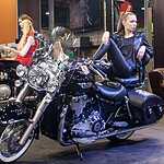 Здесь можно было поглядеть на легендарные Triumph Thunderbird и Triumph Bonneville, мирно соседствующие с новенькими круизёрами и спортбайками BMW, историческими Indian, премиумными Confederate и рейдовыми КТМ. Аниматоры проводили маленькие презентации и шоу с рассказами об экипировке, истории и о моделях компаний, а отважные шоугёрл бесстрашно входили в клетку к Зверю от BRP.