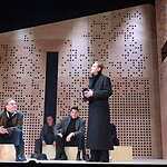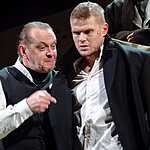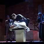 Михаил Горевой воплотил на сцене тёмную сущность человеческой личности в образе судьи Дэнфорта. Что движет такими людьми как он? Сладость всевластия? Извращённое удовлетворение при виде мук совершенно ни в чем неповинных людей, обвинённых в абсурдных вымышленных преступлениях и ожидающих виселицы. В спектакле есть сцена, когда откуда-то сверху внезапно летят вниз тёмные пальто, похожие на подбитых птиц. Это души казненных, число им – количество повешенных «ведьм». Они падают на спящего судью Дэнфорта, но он спит под душами убиенных им людей как под теплым одеялом. На глазах у зрителей судья просыпается после пьяной ночи, чистит зубы, сплевывает в тазик и это помимо прочего вызывает физиологическое отвращение к нему. Профессиональная палитра Горевого, безусловно, богата, и даже местами перехлёстывает через край, но всё же центральная фигура спектакля это Джон Проктор.