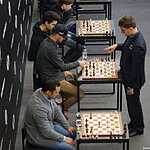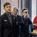 Второй этап Гран-при ФИДЕ-2017 проходит в Москве с 11 по 21 мая в здании Центрального телеграфа. Здесь также состоялся сеанс одновременной игры любителей с гроссмейстером Сергеем Карякиным.