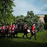В парке солдаты разбили лагерь и устроили артиллерийскую батарею. В рекрутской школе всех желающих обучали муштровать и строевой подготовке.