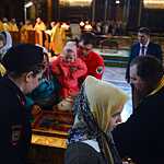 Для удобства прихожан и северный вестибюль метро “Кропоткинской” у Храма Христа Спасителя работает только для входа. А чтобы попасть в очередь, тянущуюся вдоль набережной Москвы-реки, лучше всего выходить на станции “Парк-Культуры” или “Фрунзенская”, т.к. начало очереди находится на Фрунзенской набережной между как раз этими станциями. На всем пути от метро до начала очереди и на всем ее протяжении, а так же в храме и на выходе из него можно найти волонтеров, готовых всегда помочь, подсказать, вызвать доктора, если понадобится. Для безопасности паломников целиком или частично перекрыты для движения транспорта набережные прилегающие к Храму улицы.