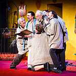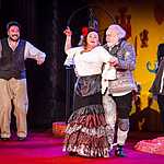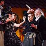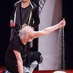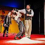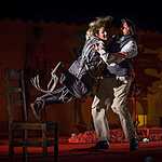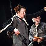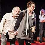 Михаил Левитин поставил чудесный спектакль, тонкий, умный и в то же время зрелищный, радующий нас не только великолепными актерскими работами, но запоминающимися декорациями в исполнении замечательного Сергея Бархина. Борис Романов ожидаемо прекрасен в роли Дон Кихота. В первом действии его персонаж вызывает геометрический хохот в зале, во втором – многие зрители не могли сдержать слез. Причем, этот переход происходит как-то незаметно и постепенно. Исподволь, но навсегда Борис Леонидович завоевывает сердца зрителей. А какой трогательный дуэт сложился у них с Дарьей Белоусовой в роли Россинанта, наполненный искренней теплотой и даже нежностью! Другая парочка – Санчо Панса в исполнении Сергея Олексяка и его ослик не столь романтичны, но как выяснилось, не менее привязаны друг к другу. Ослик в романе ничем особо не выделяющийся, у Левитина стал украшением спектакля. Персонаж Аллы Черных – горький пьяница, в полном соответствии со своей ослиной природой, не блещет разнообразием произносимых реплик, зато произносит их от души и во всю мощь голосовых связок. А уж по части благоразумия не уступит и самому Санчо Пансе. Не менее убедительны роли второго плана: ключница в исполнении Галины Морачевой, Сансон Карраско – Станислав Сухарев, Альдонса – Ольга Левитина, Мавр – Денис Назаренко. И еще один важный персонаж присутствует на сцене – это время. Присутствует зримо, тонкой струйкой песка медленно, но неотвратимо отсчитывает мгновения жизни и к концу спектакля напсыпет могильный холмик и над хитроумным идальго, и над его верным оруженосцем, и над самим Сервантесом.