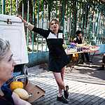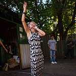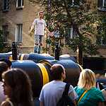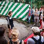 А что же есть? Есть солнечный летний вечер, отличная погода, есть прогулка по Шаболовским дворикам и переулкам в хорошей компании, есть отличные тексты и стихи разных авторов, есть пластические этюды в самых неожиданных локациях, есть эпатаж, немного эротики, немного нецензурщины, есть удивленные, а порой и недовольные взгляды прохожих, и даже угрозы рассерженных жителей вызвать полицию, если безобразие под их окнами немедленно не прекратится. Есть попытки говорить со зрителями напрямую от чем-то важном, что волнует героя в данный момент, поделиться какими-то личными историями. Впрочем, попытки довольно вялые, возможно, приевшиеся актерам после неоднократного исполнения.