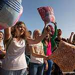 3 сентября московская молодежь собрались на конкурном стадионе в Битце, чтобы проводить лето праздником красок Холи и Большой битвой подушками. В воскресенье выдался теплый солнечный день. Множество разноцветных молодых людей разделившись на две команды – «Перья» и «Вата», задорно колошматили друг друга подушками по кумполу и другим частям тела.