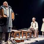 Спектакль, в первую очередь, интересен актерскими работами. Нежнейший Николай Чиндяйкин – актер с внешностью не то криминального авторитета, не то сотрудника органов, сыграл такого искреннего, доверчивого и простодушного, полного нерастраченной любви Сарафанова, что ему безоговорочно веришь, когда в финале звучит фраза: «Вы все мои дети! Потому, что я люблю вас!». Николай Дмитриевич произносит ее негромко, не пафосно, но так, что становится очевидно – это большое, истосковавшееся без любви сердце Сарафанова-старшего просто не может потерять только что обретенного сына, оно просто не выдержит.