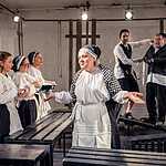 Сюжет простой, но увлекательный, потому что про любовь. Кроме того, не забывайте, что перед вами пьеса Григория Горина, а значит, это точно смешно. Это смешно без клоунады и спецэффектов, это смешно само собой, между делом и в процессе, это смешно, потому что так и надо. Это смешно потому, что Тевье в исполнении Евгения Никулина и его жена Голда в исполнении Людмилы Давыдовой не пытаются быть смешными. Они просто играют гениально. Да, я уже слышу ваши мысли про Ленком и Леонова. И про Абдулова. И про Захарова. Про этих гениальных и бесконечно любимых людей. Все правда: там тоже гениально, но по-другому. Тевье и Голда в театре «Мост», они домашние, теплые, близкие. Они со своими коровами, дочками, борщом, с усопшей бабушкой и непутевыми родственниками, с навеки установленным шаббатом и тотальным еврейским невезением и даже с этой, как всегда, не к месту, революцией остаются, прежде всего, папой и мамой. И всех – в гости, за стол, под крыло, всех пожалеть, накормить, обогреть. Зрители в зале – тоже семья. Они не просто смотрят, они уже сидят за общим столом, плачут и смеются вместе с хозяевами. А во главе всего действия стоит и незримо руководит процессом беззащитная и непобедимая в своей немощи отцовская и материнская любовь. Такая нелогичная и непоследовательная, прощающая и непослушных дочерей, и их непутевых женихов, и тех, кто пришел, чтобы отнять, оскорбить, убить.