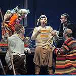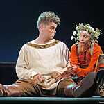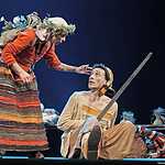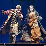 Артист РАМТ Изнаур Орцуев исполняет в спектакле роль Добрыни Никитича, но по замыслу автора пьесы это не канонический былинный богатырь, а двойной агент: