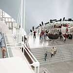 Изменения произошли и в самой старой части павильона. Ещё в 1939 году под стилобатом были оборудованы выставочные залы, в которые можно было попасть через боковые проходы или спустившись по лестницам. Со временем эти помещения стали использоваться как служебные, а широкие проходы к ним замуровали. Сейчас порталы вновь открыты, в залах можно проводить выставки, кинопоказы, мастер-классы. В них сохранён и исторический рисунок полов.