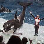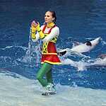 Озорная восьмерка дельфинов с явным удовольствием выполняют указания своих дрессировщиков. Синхронно выпрыгивая из воды на 5-6 метров в высоту и выделывая потрясающие трюки, они заставят даже самого грустного скептика улыбнуться их озорству и зааплодировать вместе с сидящими рядом детьми. Невероятно захватывающий взгляд номер, где дельфины разгоняются и выбрасывают своими носами тренера из воды.