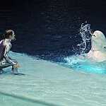 Белоснежная дальневосточная белуха Пончик в одном из лирических выступлений вместе с группой синхронисток становится облачком и доставляет героев до Луны. Очаровательное трио моржей изображает хранителей пещеры и загадывают хитрые загадки. Все животные в этом мюзикле выступили красиво и восхитительно. И пластика моржей и морских львов, и трюки дельфинов – всё просто захватывает дух и воображение, но самый пик эмоций происходит в конце, когда появляются они – черно-белые косатки. Несмотря на свои размеры, косатки легки в своих движениях. Из-за их скорости и грации не всегда можно угадать, когда они станут выпрыгивать из воды. Каждый такой прыжок – это на грани фантастики. Когда косатка падает в воду и поднимает вулкан брызг – то это самое незабываемое ощущение. Мощь и скорость этих животных поражают, а в сочетании с танцующими фонтанами номер с косатками выглядит невероятно феерично.