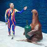 Открывают представление необычные ластоногие конферансье. Морские львы показывают детям и их родителям, как правильно нужно вести себя в зале во время шоу. Подражая дрессировщику, животные аплодируют ластами, танцуют и кивают в знак согласия.