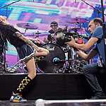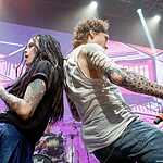По завершении пресс-конференции на сцену Yota Arena вышли участники «НАШЕСТВИЯ» акустический Евгений Мильковский, фронтмен группы «Нервы» и боевой состав «СЛОТ».