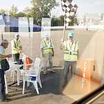 Пока судейская комиссия подводила итоги, на площадку выехали мотоциклисты — инструкторы Учебно-курсового комбината ГУП «Мосгортранс» Алексей Саушкин и Георгий Клинов, в свободное от работы время занимающиеся стантрайдингом.