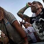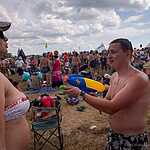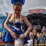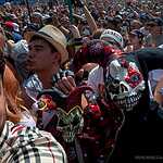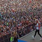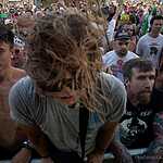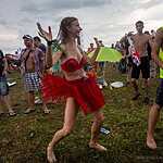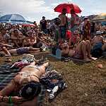 В любой день фестиваля, в любое время дня на поле перед главной сценой было людно. Подальше от сцены царит релакс и чилл-аут: можно поставить кресло или расстелить матрасик, пиво и закуски под рукой, до туалета бежать недалеко, а музыку слышно отлично. Поближе к сцене, куда еще можно спокойно подойти и даже потанцевать, группируются фанаты средней степени тяжести. И, наконец, у самой сцены собираются самые преданные, со стальным терпением и чугунным мочевым пузырем. Они приходят сюда к самому началу, чтобы к полуночи услышать и увидеть хедлайнера. Некоторые, правда, не выдерживают и выбрасываются через турникеты под сцену, как киты на берег. Там их принимает суровый, но вежливый ОМОН, аккуратно скручивает и уносит.