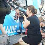 Не менее весело было и на «НАШЕ 2.0»: ударник группы «Голос Омерики» подполз к краю сцены, пообщаться с прессой при помощи рупора. Жаль, недолго: пока фотографы, ухая от восторга, меняли обьектив на зум, он вырубился окончательно.