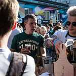Толпа. Все ещё трезвые. Множество точек питания и распития. Получаем положняковые стаканы. Без стакана ты букашка, со стаканом человек. Круг почёта по рядам пивоварен. Откуда начать? Не с начала же!