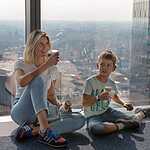 Взмыв к небесам (а точнее – 89 этаж) на сверхскоростном лифте, мы очутились на территории самой высокой в Европе (расположенной на этаже здания) смотровой площадки. С великолепным панорамным видом на столицу.