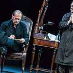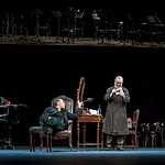 Свое выступление на сборе труппы Римас Туминас начал с чтения отрывков “Завещания” Родена: “Будьте глубоко и непримиримо правдивы. Никогда не бойтесь выразить то, что вы чувствуете, даже если ваши мысли противоречат общепринятым.” Кроме того, он цитировал “Фауста” и говорил о том, что искусство обязано (именно обязано!) поднимать зрителя на более высокий моральный и духовный уровень. Поэтом пьеса “Фальшивая нота” в руках чутких и талантливых мастеров Римаса Туминаса, Геннадия Хазанова и Алексей Гуськова так и не стала обычным детективом. Она превратилась в пронзительную историю, сыгранную, нет, прожитую актерами и режиссером точно, красиво, глубоко в каждом отточенном жесте, в каждой отшлифованной фразе, в каждой паузе, наполненной смыслом. Этот спектакль благословил и Роденовский резец, и искусное перо тайного советника Гёте, посвятившего своему “Фаусту” несколько десятков лет своей жизни, и уникальная музыкальная среда, созданная композитором Фаустасом Латенасом, который смог блестяще совместить собственную музыку с бессмертной классикой. “Фальшивая нота” наполнена смыслом: каждый сантиметр пространства и каждый звук. Этот спектакль надо смотреть и надо слушать.