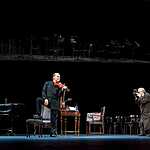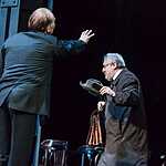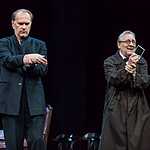 Девяносто восьмой Вахтанговский сезон начался с премьеры спектакля “Фальшивая нота”. Одноименная пьеса, по которой поставлен спектакль, была написана французским драматургом Дидье Кароном в 2017 году и почти с пылу с жару попала в руки Геннадия Хазанова, который всерьез заинтересовался этим произведением. В основе сюжета пьесы лежит глубокий конфликт двух музыкантов. Лихо закрученную историю можно было бы превратить в увлекательный детектив и не более, если бы за это дело не взялся Геннадий Викторович, сумевший увидеть в пьесе гораздо больше, чем просто историю одного преступления.