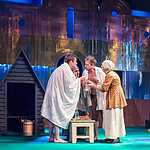 Лучше самим посмотреть на очаровательную, ироничную, тонкую Екатерину Тенету в роли Екатерины II и не только, на искреннюю и восхитительно простую Арину Родионовну в исполнении Галины Марачевой, на глубокую и прекрасную Алю Никулину в роли мамы Есенина. И конечно, надо увидеть, как в самом финале на сцену выйдет Владимир Шульга и будет читать монолог Пугачева… И как зал замрет, боясь лишним звуком прервать волшебство, происходящее на сцене. Поэтому одевайтесь потеплее, берите семью и смело идите в “Эрмитаж”. Спектакль “Цари”. Не забудьте.