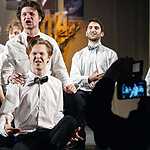 А самый первый выпуск студийцев состоялся в 1918 году в Хамовниках – Студенческая драматическая студия поначалу размещалась в старом особняке в Мансуровском переулке. Этот дом не так давно снесён. На экране сменяют друг друга чёрно-белые фотоснимки, портреты актёров, сцены из спектаклей, а вот уже Арбат – конструктивистское здание Театра имени Вахтангова, разбомбленное в войну во время авианалёта. В 1937 году по соседству с театром было возведено здание и для студии. Если вспоминать историю, невозможно не сказать о Борисе Захаве, который принимал участие в том самом первом неудачном спектакле, затем занимался режиссурой и посвятил свою жизнь театральной педагогике, возглавляя училище с 1922 по 1976 год.