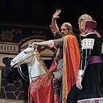 Пушкинская «Сказка о царе Салтане» своего рода – «народное достояние». Эту сказку читают детям в колыбели, её учат в школе, по ней снимают мультфильмы и ставят спектакли. В 1998 году известный режиссёр-постановщик Виталий Николаевич Иванов также поставил «Салтана» на сцене прославленного театра и спектакль мгновенно влюбил в себя публику, но перед масштабной реконструкцией основной исторической сцены был снят с репертуара. Снят – но не забыт. И вот, спустя три года, спектакль возвращается уже на новую сцену с новым звуком, новым светом, в новом актёрском составе и новыми великолепными декорациями, воссоздающими иллюстрации гениального русского художника Ивана Билибина.