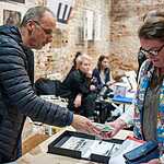 Все, кому интересна российская фотография, могли прийти в центр FOTODOC и полистать фотокниги как совсем новые, так и выходившие в последние годы в России, а также при желании приобрести понравившиеся прямо на месте у самих авторов, представлявших свои работы на специально выделенных столиках-прилавках.