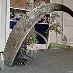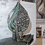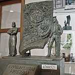 Помимо монументальных работ на выставке представлены и камерные произведения, например, строитель, сидящий на лавочке перед фонтаном. Горожане любят подобные скульптуры, они не подавляют, на них не надо смотреть снизу вверх, а инстаграм неизбежно пополнится селфи со строителем. Будь я членом жюри, пожалуй, выбрал бы нечто подобное. Но в этой работе есть недостаток – отсутствует привязка к конкретному городу, её можно установить хоть в Москве, хоть в Саратове. Но ведь тема конкурса – монумент «Строителям Москвы».