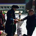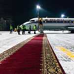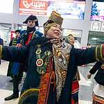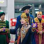 Обычно, новый рейс, встречают водяной аркой на рулёжной дорожке. На этот раз из-за мороза арку заменили на лазерное шоу. У трапа пассажиров встречали хлебом, солью. По итогам нашумевшего конкурса «Великие имена России», воронежский аэропорт получил имя Петра I Великого, конечно же царь Пётр вместе с русским народным ансамблем встречал гостей на красной ковровой дорожке.