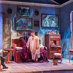 Отменно хороша и сценография спектакля, с воссозданным интерьерным срезом дома, включая даже окна, через которые льётся то утренний, то дневной свет, и через подобные многочисленные беззвучные необычные акценты мощно вовлекая зрителя в действие. Сергей Бархин уже в седьмой раз создаёт театральное пространство для замыслов Карбаускиса. Музыку к спектаклю написал Фаустас Латенас, которого, без всякой ложной скромности необходимо назвать выдающимся современным композитором. Помимо актёрской игры, великолепных декораций и костюмов, музыка в этом спектакле является третьим фактором, дарующим эстетическое удовольствие.