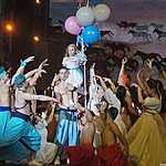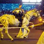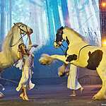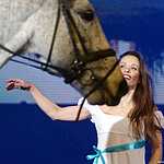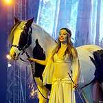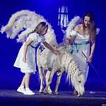 В качестве декораций и для обозначения сценического пространства были выставлены большие экраны, на которых транслировали видео в тему действия, происходящего на арене. Изюменкой шоу стал уже известный номер «Пегас». Просто очаровательный конь, и как же он прекрасен в образе! Казалось, что он взмахнет крыльями и взлетит к куполу манежа.