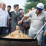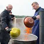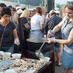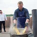 Свою уху приготовил и временно исполняющий обязанности губернатора Астраханской области Игорь Бабушкин. Для того, чтобы бульон был прозрачным и в супе не оказалось чешуи рыбу оборачивают в марлю. А вот для придания особого аромата в губернаторскую уху добавили раковое мясо, опустили уголек и добавили немного водки.